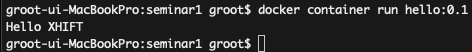 도커 컨테이너의 생명주기는 실행 중과 정지 상태로 나뉘며, 완전히 삭제시키는것을 파기 한다고 한다. 위에서 생성한 "Hello XHIFT" 를 출력하는 간단한 java 코드를 도커 이미지를 이용해 실행해 보았다.