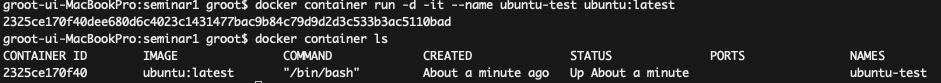 docker container run -d -it --name ubuntu-test ubuntu:latest