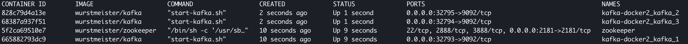 > docker-compose scale kafka=3
